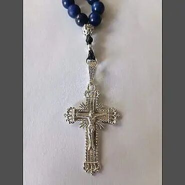 Molitvena brojanica 50 perli lapis lazuli srebro je ručni rad napravljena od perli poludragog kamena Lapis lazulija u veličini 8 mm perle. Ova brojanica ima 50 perli i krst sa perlom od srebra kvaliteta 925. Po želji kupca istu možemo napraviti sa drugim poludragim kamenom. Svojstva kamena: Lapis lazuli je plavozeleni poludragi kamen koji je poznat po svojoj predivnoj boji i ukrasnim svojstvima. Evo nekih od svojstava koje se pripisuju ovom kamenju: Lapis lazuli se tradicionalno smatra kamenom mudrosti i istine. Neki vjeruju da ga nošenje može pomoći u razvoju duhovne svijesti i jasnijem izražavanju vlastitih misli. Ovaj kamen se smatra snažnim stimulansom intuicije i mašte. Neki vjeruju da ga nošenje može potaknuti kreativnost i otvoriti um za nove ideje i perspektive. Lapis lazuli se također smatra kamenom zaštite i stabilnosti. Neki vjeruju da ga nošenje može pružiti osjećaj sigurnosti i mira, posebno u teškim vremenima. Fizički, lapis lazuli se pripisuje svojstva koja pomažu u jačanju imunološkog sustava, olakšavanju upale i bolova, te poticanju zdravlja srca i krvnih žila.