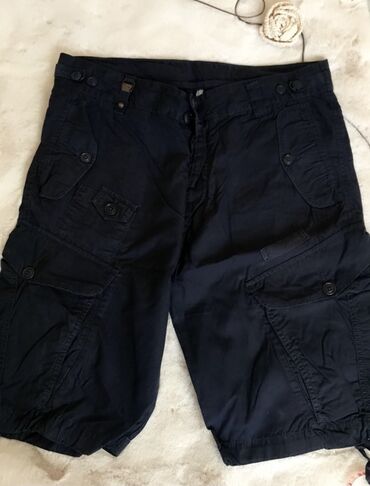 Muške bermude –vel.11 tamnoplave, chino kroj - Materijal: glatki pamučni saten sa blagim sjajem (lagan i prijatan za leto) - Boja: tamnoplava (navy) - Kroj: klasičan ravni kroj do iznad kolena - P...