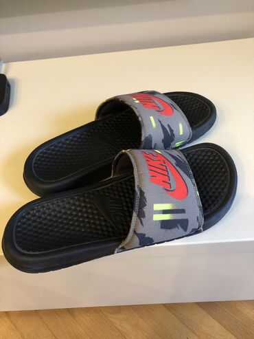 Papuče puma, vel.. 43 marka: puma veličina: 45 materijal: guma dužina gazišta: 29 cm šifra: ob72 originalne muške papuče puma u odličnom stanju (pogledajte slike ).