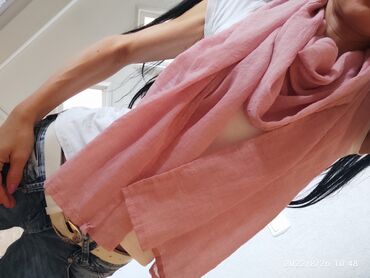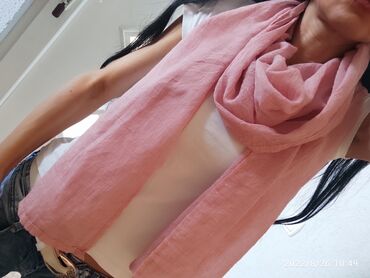 Svilenkasta marama/ ešarpa sa floralnim dezenom. - Dimenzije: 55 x 55 cm - Oblik: kvadratna (može se nositi kao trokutasto presavijena) - Boje: puder‑roze i svetloružičasta osnova, cvetni motivi u...+381 60 32737xx