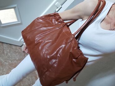 Elegantna ženska torbica – pismo model sa velikom mašnom. - Dimenzije: 30 x 20 cm - Cena: 3500 din. Materijal u bež/lanenom tonu, prednji poklopac ukrašen perlicama, šljokicama i školjkicama. D...