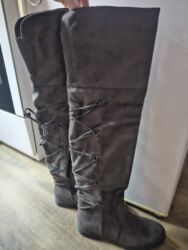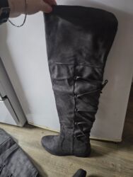 Ženske visoke čizme do kolena, crne. U savršenom stanju, nošene samo po sobi, prodajem zato što su mi male. - Materijal: gornji deo kombinacija glatke eko-kože i elastične tekstilne strane koja ...+381 63 78808xx