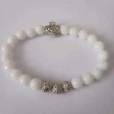 Osetite čistu energiju i beskarnu eleganciju uz ručno izrađenu brojanicu od belog kvarca i srebra 925! Ova prefinjena kreacija, pažljivo oblikovana od strane majstora zanata, spaja lepotu poludragog kamena belog kvarca sa blistavim detaljima srebra, donoseći svetlost i harmoniju u vaš život. Čisto beli kvarc, poznat po svojim pročišćavajućim svojstvima i sposobnosti da pojačava pozitivnu energiju, dolazi u fasetiranoj i savršeno obrađenoj varijanti, garantujući izuzetnu postojanost i sjaj. Tri srebrne perle i elegantan srebrni krst dodaju duhovni i luksuzan dodir, čineći ovu brojanicu idealnim simbolom mira i sofisticiranosti. Zašto odabrati ovu brojanicu? Unikatni ručni rad : Svaka brojanica je jedinstvena, izrađena s ljubavlju i preciznošću za vrhunski kvalitet. Poludrago kamenje : Fasetirane perle belog kvarca su čisto bele boje, postojane i blistave, pune prirodne energije. Srebro 925 : Tri srebrne perle i krst od čistog srebra dodaju trajnost i bezvremenski šarm. Prilagođena vama : Izrađujemo brojanicu po meri vašeg zgloba za savršeno pristajanje i udobnost. Za koga je ova brojanica? Ova brojanica je savršena za one koji traže spoj duhovnosti i stila. Bilo da je nosite za meditaciju, molitvu ili kao dnevni dodatak, beli kvarc će vam doneti jasnoću uma i pozitivnu vibraciju. Idealna kao poklon za voljene osobe koje cene unikatni nakit sa dubokim značenjem. Naručite odmah! Ne propustite priliku da posedujete ovu besprekorno lep brojanicu koja spaja prirodu, umetnost i energiju. Kontaktirajte nas sa merama zgloba i unesite svetlost u svoj život već danas!