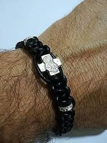 Brojanica koža srebro 925 je ručni rad napravljena od čistog srebra u osnovi sa krstićima sa strane narukvice i napletene crne kože na osnovi narukvice, od jednog krstića do drugog ide srebrne šina...