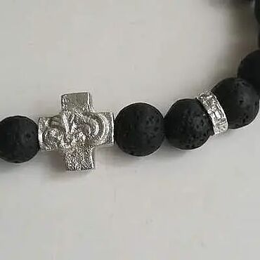 Ova brojanica za ruku od vulkanske lave je ručno izrađen komad nakita koji spaja prirodnu snagu i duhovnu simboliku. Napravljena od perli vulkanske lave prečnika 8 mm, ova brojanica očarava svojom robusnom, mat crnom teksturom koja simbolizuje snagu, stabilnost i povezanost sa prirodom. Srebrni ukrasni elementi, uključujući krstić od srebra kvaliteta 925 težine 3,7 grama, dodaju eleganciju i trajni sjaj ovom jedinstvenom aksesoaru. Sa dužinom obima od 20 cm, ova brojanica je dizajnirana za udobno nošenje, idealna za svakodnevnu upotrebu ili kao poseban poklon za one koji cene prirodne materijale i duhovni značaj. Vulkanska lava, poznata po svojoj energiji uzemljenja, čini ovu brojanicu ne samo estetski privlačnom, već i snažnim simbolom unutrašnje snage. Dodajte prirodnu snagu i duhovnu eleganciju svom stilu uz ovu prefinjenu brojanicu od vulkanske lave i srebra!