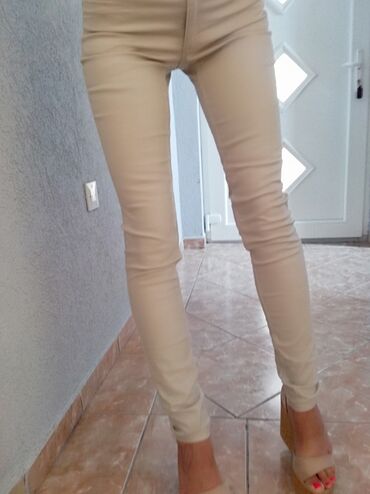 Ženske pantalone sa animal printom (leopard motiv) - Boja: crno‑beli/leopard uzorak - Kroj: uske nogavice (slim/skinny stil) - Struk: srednji - Zatvaranje: rajsferšlus + dugme napred - Džepovi: kl...