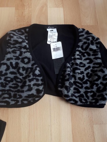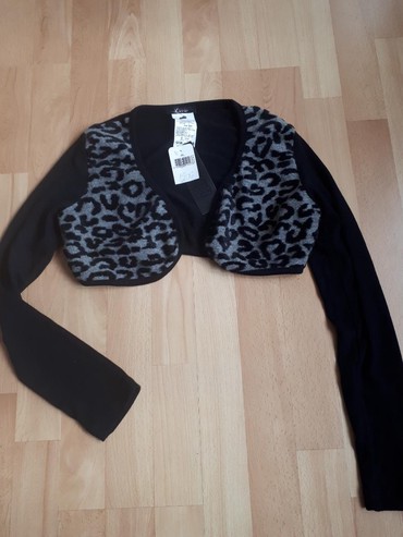 Crni bolero/sako sa dugim rukavima - Model: kratak bolero kroj koji se završava iznad struka, otvoren sprijeda bez kopčanja - Materijal: mekana, elastična tkanina prijatna za kožu (sintetički miks...