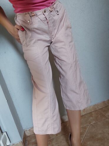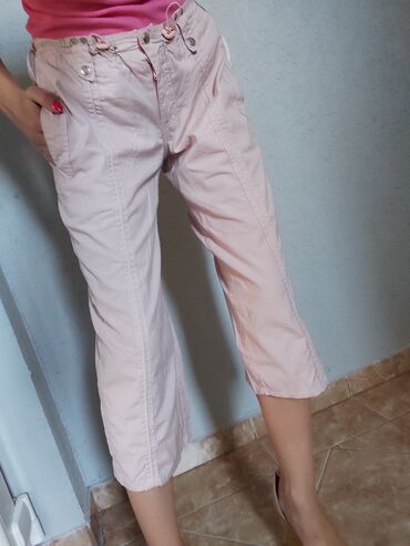 Svetloplave ženske 3/4 pantalone TONA, veličina 42. - Materijal: 79% viskoza, 18% poliamid, 3% elastan – mekane, prozračne i blago rastegljive. - Kroj: ravan nogavica sa diskretnim štepom i malim ...