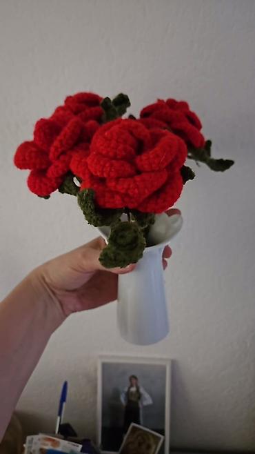 Dimenzije: standardna veličina ruže; svaki cvet izrađen pojedinačno, blago varira u formi . Idealan poklon za dan zaljubljenih , Osmi mart ili ljubitelje rucnog rada