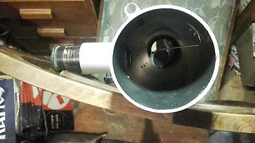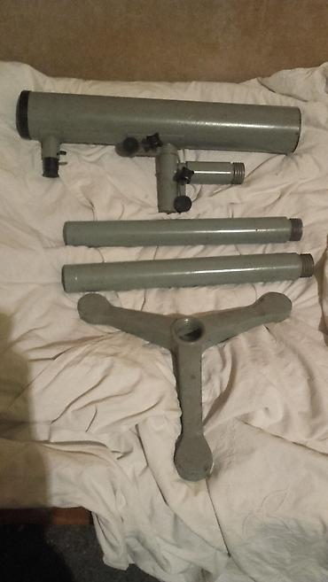 - Modularna konstrukcija: cev sa nosačem, dva navojna segmenta stalka i masivna baza tronošca (vidljivo na fotografijama)