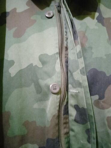 bez postave (postoje rupice za kopcanje). ocuvana, bez ostecenja, osim sto je skracena i od vetrovke pretvorena u duzinu od 76cm. Nema oznake za velicinu, po dimenzijama odgovara XL ili 2XL, sirina ramena 59cm, sirina ledja u visini pazuha 61cm, duzina rukava 63cm.