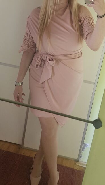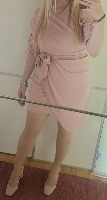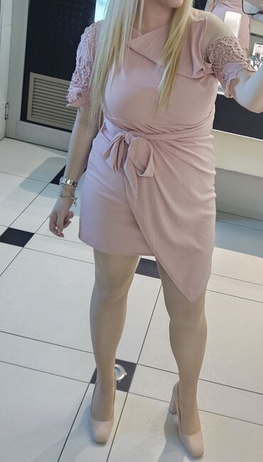 Elegantna kratka haljina u puder roze boji. - Kroj: asimetričan