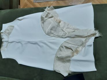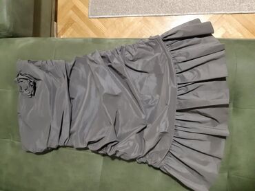 - Asimetrična dekorativna draperija od svetlucave tkanine na prednjem delu