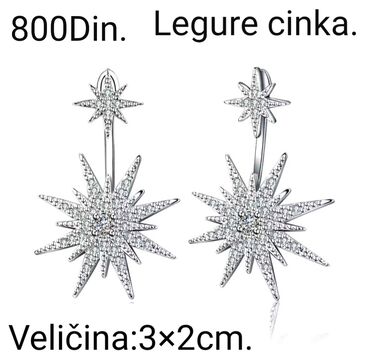 Naslov: Mindjuse — Par 850 din / 2 para 1300 din Opis: - Elegantne minđuše u više modela: - Srebrnkaste alke sa višebojnim cirkonima. Dimenzija jedne alke: prečnik oko 1,7 cm (0,67 in). Težina p...