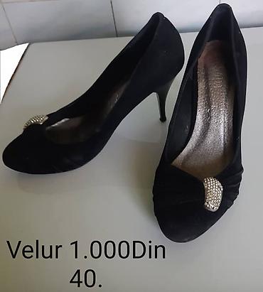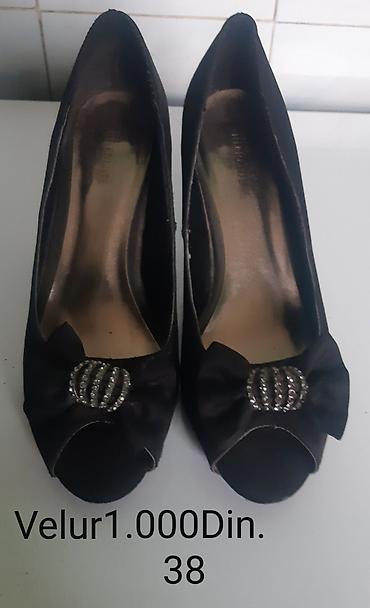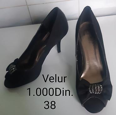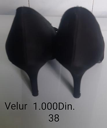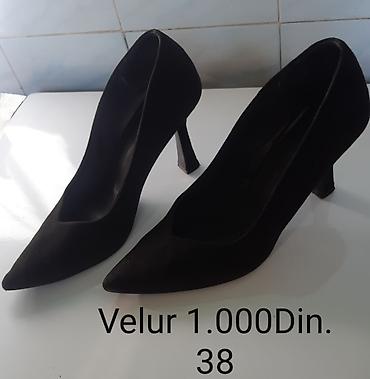 1) Velur, špic, klasičan salonar, tanka visoka potpetica. Broj: 38. Cena: 1.000 din.