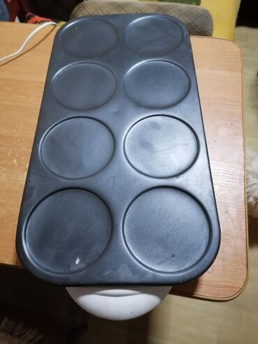 - Velika ravna ploča sa šest okruglih ležišta (prečnik ležišta približno 10–12 cm) za istovremenu pripremu više komada.