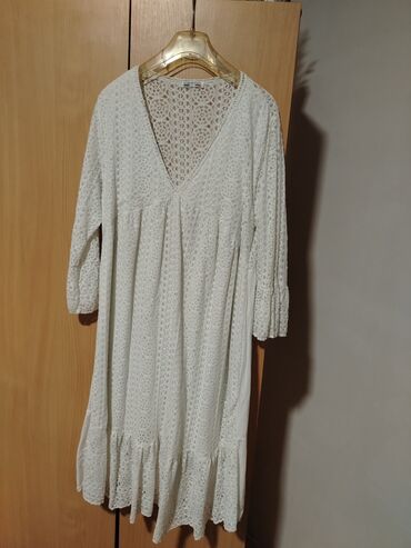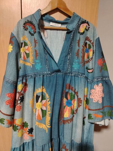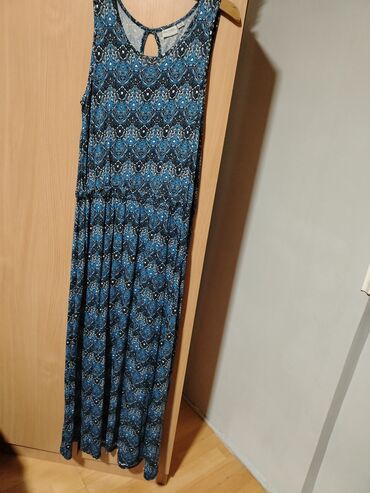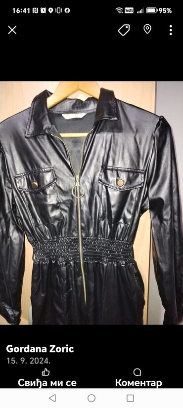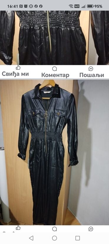 Haljina crno-crvena karirana, sa dugim rukavima - Gornji deo: crna, rebrasta elastična trikotaža sa okruglim izrezom. - Donji deo: karirani A-kroj u crveno‑crnim kockama (buffalo check), mekana tk...