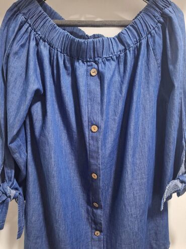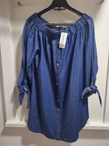 Pamučna tunika/haljina u A-kroju, tamno‑teal (petrol) boje. - Jednostavan, ravan okrugli izrez. - Rukavi 3/4 dužine. - Mekan, lagan i elastičan trikotaž (pamuk sa elastinom – prijatan na koži). ...Stanje: