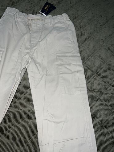 Dečije pantalone od rebrastog somota (kord) u svetlo bež boji .. - Tkanina: mekani, nežno rebrasti somot, Ravne nogavice koje se blago skupljaju pri dnu sa elastičnim manžetnama Ima dva bočna uši...