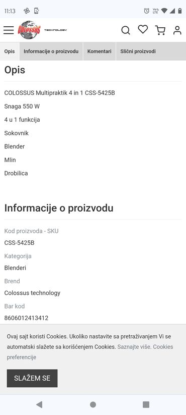 Tehničke Karakteristike Snaga 600Ukupni kapacitet posude 2Materijal