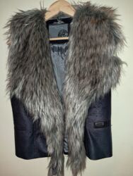 Dugi prsluk od prirodnog krzna (srneća dlaka), veličina S. - Model: dugačak prsluk bez rukava - Zatvaranje: rajsferšlus po celoj dužini - Postava: glatka satenska podstava u bež nijansi - Kroj: bl...