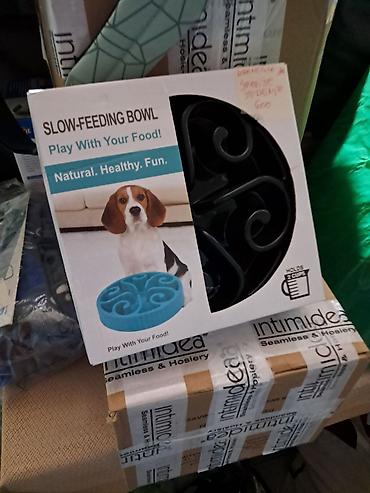- Spora posuda za hranjenje pasa (Slow-Feeding Bowl). Dizajn sa lavirintom usporava uzimanje hrane i podstiče „igranje“ tokom obroka. Na kutiji je naznačeno da drži 2 šolje (2 cups). Materijal sa glatkom unutrašnjošću za lako čišćenje.