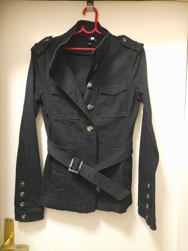 - Detalji: epoletne na ramenima s dugmetom, podesiv kaiš u struku s pravougaonom kopčom, blago raširen donji deo leđa za lep pad