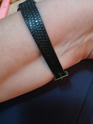 - Crna kožna narukvica sa teksturom, klasična kopča u metalik tonu.
