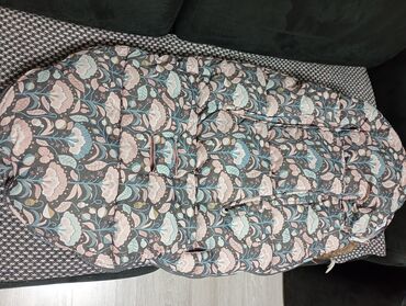 - Dizajn: floralni print u sivo‑ružičastim tonovima; kragna sa veštačkim krznom