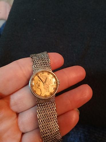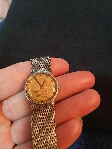 Napomena: Na brojčanici je vidljiv ukrasni motiv i natpis, bez prikaza datuma ili dodatnih komplikacija. Idealno za ljubitelje vintage estetitike i zlatnih tonova.