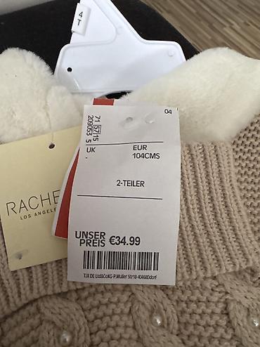 - Veličina prema etiketi: UK 0-4 (za bebe/malu decu); na drugoj etiketi stoji „EUR 104/3-5“ – proverite mere prema detetu
