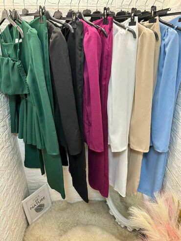 Dvodijelni komplet – bluza i pantalone NOVO odgovara za S/M/L - Dizajn: apstraktni print u nijansama maslinasto‑zelene, bez, sa mekim, talasastim prelazima. - Gornji deo: kratki rukavi, opušten kr...