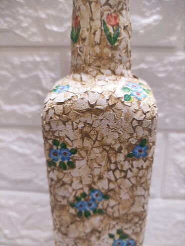 Dekorativna flasa. Tehnika dekupaz, flasa je lakirana i moze da se brise vlaznom krpom. Pogledajte i moje ostale oglase.