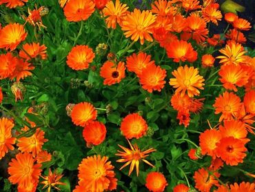 - Calendula officinalis (neven): obilno cvetanje u narandžastim nijansama. Poznata kao korisna biljka u povrtnjaku, pogodna i za saksije. Visina 25–40 cm, lako sega i brzo niče.