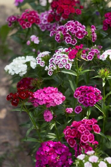 - Dianthus barbatus (turski karanfil, slatki Vilijam): bogati štitasti cvatovi u beloj, ružičastoj, malinoj i bordo boji, često sa kontrastnim okcima. Dvogodišnja/kratkoživuća višegodišnja vrsta, visina 40–60 cm, odlična za rez.