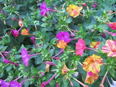 - Mirabilis jalapa (noćni cvet, “four o’clock”): raznobojne trube u nijansama žute, narandžaste, ružičaste i prugaste varijacije. Otvara se predveče, intenzivno miriše i privlači noćne oprašivače. Raste u žbun do 60–90 cm, cveta od leta do jeseni.