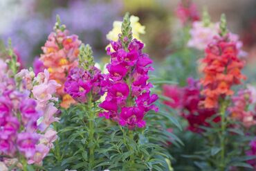- Lavljа ždralica/snapdragon (Antirrhinum majus): raskošni, uspravni klasovi u više boja (roze, narandžasta, žuta, crvena, ljubičasta). Bogato cveta, idealna za gredice i rezani cvet. Najbolje uspeva na punom suncu, u propusnom, hranljivom supstratu; redovno odstranjivanje precvetalih podstiče novo cvetanje.