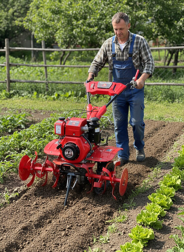 Crvena freza AgroPower sa motorom od 8.0 konjskih snaga. Pogodna je za obradu zemljišta u baštama i manjim poljoprivrednim površinama. Ima podesive ručke za lakše upravljanje i podešavanje dubine obrade.