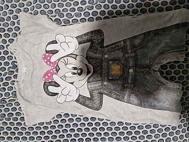 1) Sivi kratki bodi/romper sa printom animiranog lika na prednjoj i zadnjoj strani (motivi tregerica u „denim“ stilu i roze mašnica sa belim tufnama). Kopčanje na drikere između nogavica i na ramenu radi lakšeg presvlačenja. Mekan, tanji pamučni materijal. Veličina: 74 (etiketa vidljiva na slici).