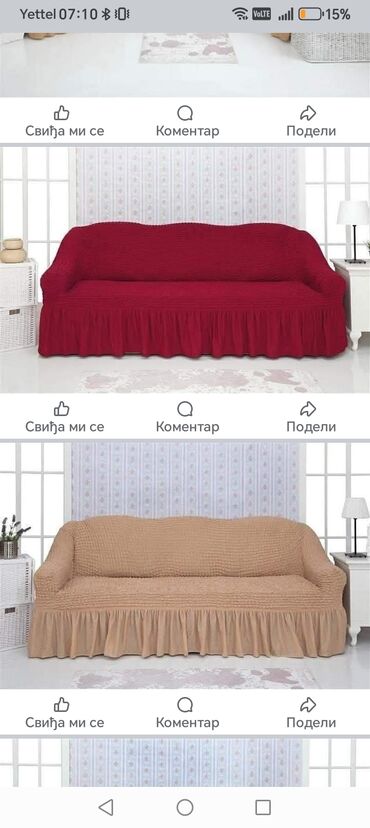 - Model: navlaka sa karnerom/volanom, prekriva naslone, sedeći deo, rukonaslone i donji deo kauča