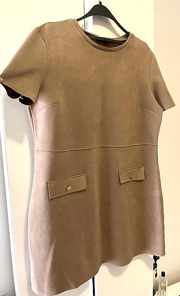 Ženska mini haljina u bež boji, imitacija antilopa. Haljina ima kratke