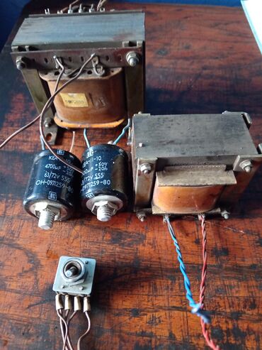 Sve je na fotografijama: transformatori sa nosačima, kondenzatori sa oznakama i rotacioni element sa kablovima. Idealno za DIY elektroniku, obnovu vintage uređaja ili kao rezervni delovi.