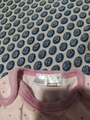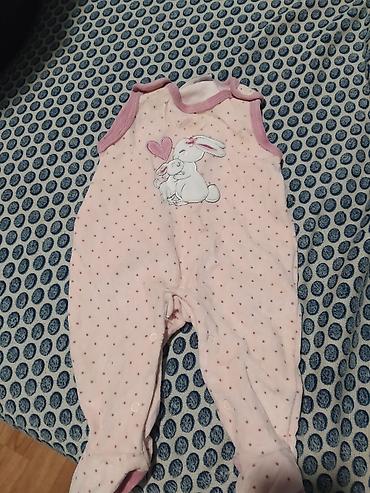 - Zeka bez rukava Engel, veličina 56. Svetloroze boja sa sitnim tačkicama, aplikacija zečića i srca napred. Obrube u tamnijoj roze, kopčanje drikerima duž nogavica i između nogu radi lakšeg presvlačenja. Zatvorenih stopala.