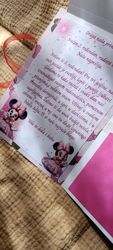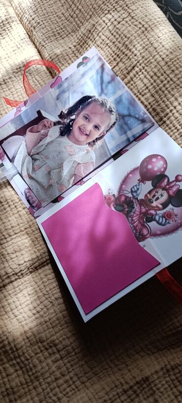 O trošku kupcaRučno rađena rođendanska čestitka/foto-mini album sa motivima Minnie Mouse.