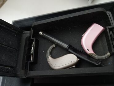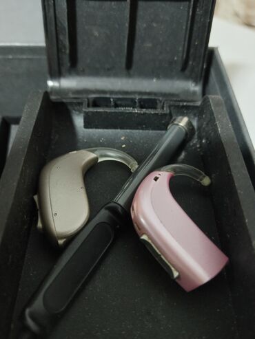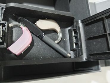 - Dva iza-uveta (BTE) slušna aparata Oticon, u boji bež i roze.