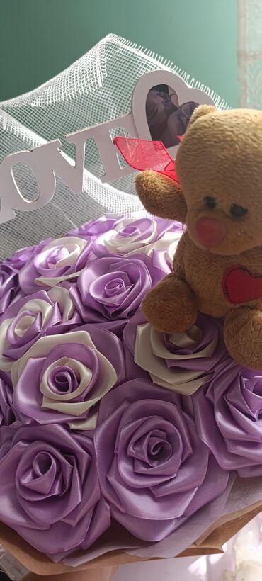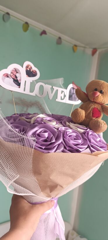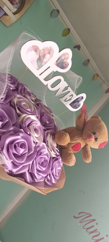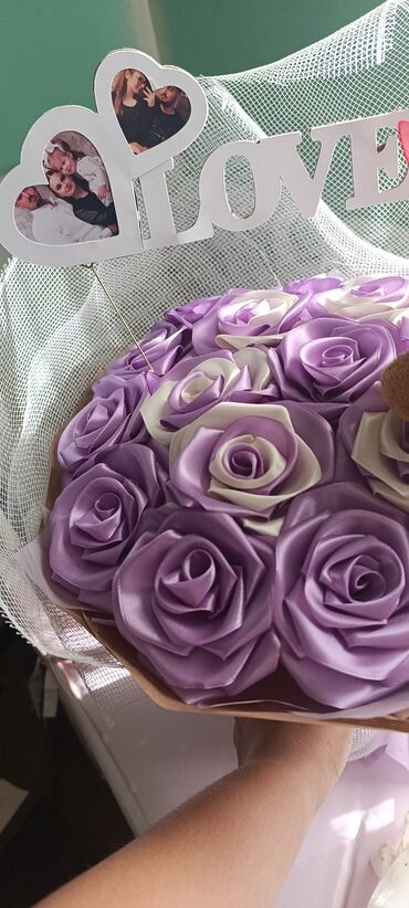Veštačko cvećeCena zavisi od veličine buketa i broja dekoracija! Personalizovani buketi od satenskih ruža sa fotografijama