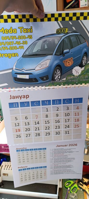 Zidni kalendar za 2026. godinu – Meda Taxi motiv