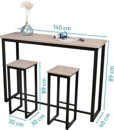 - Dimenzije svake barske stolice: 30 × 30 cm, visina 89 cm