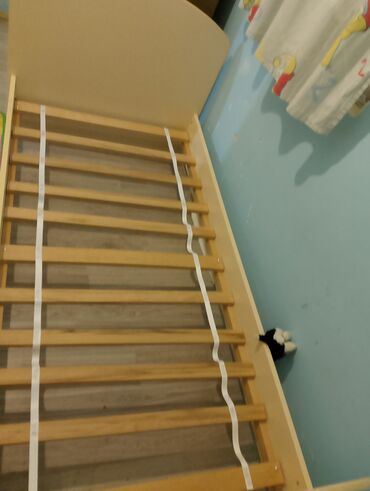 - Materijal: ploče od iverice/medijapana u svetlo bež boji; letvice od punog drveta