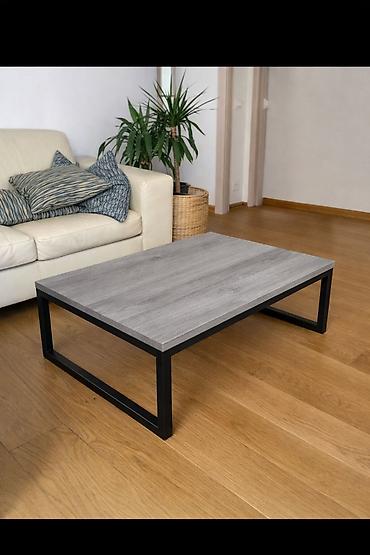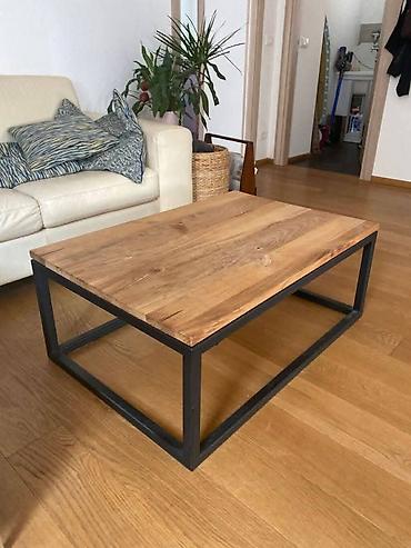 - Moderan industrijski dizajn: masivna drvena ploča prirodne teksture u kombinaciji sa crnim metalnim ramom pravougaonog profila.